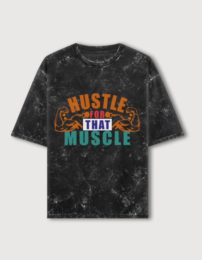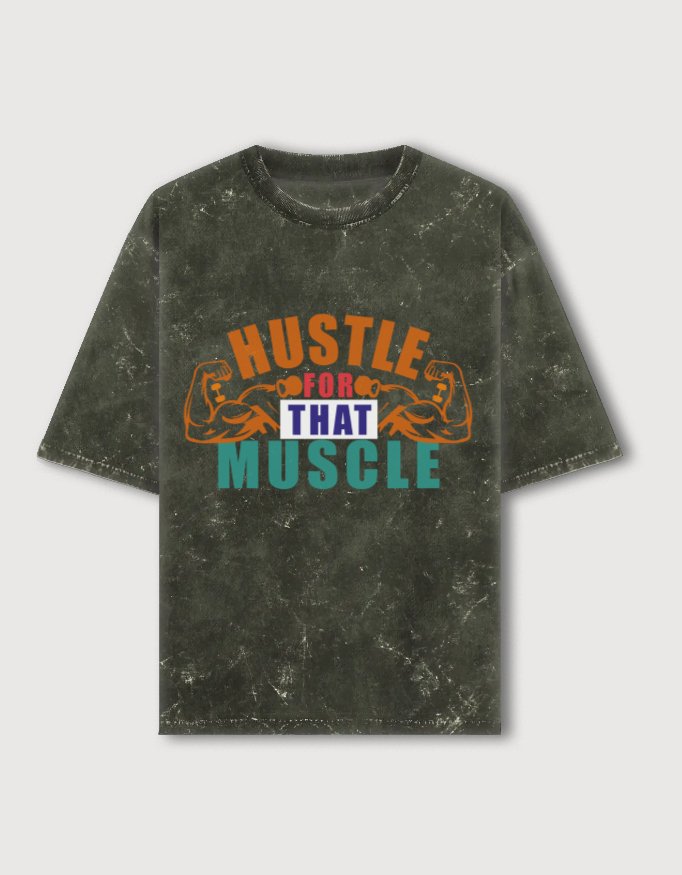 The striking “Hustle for Muscle” print captures the grind and passion of gym goers who push beyond limits to build strength and endurance.