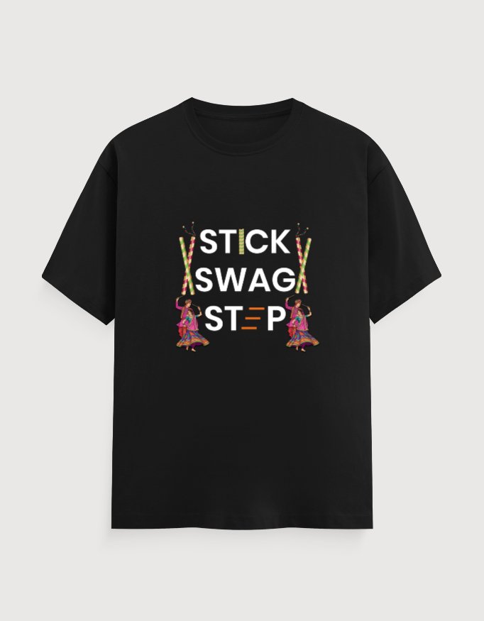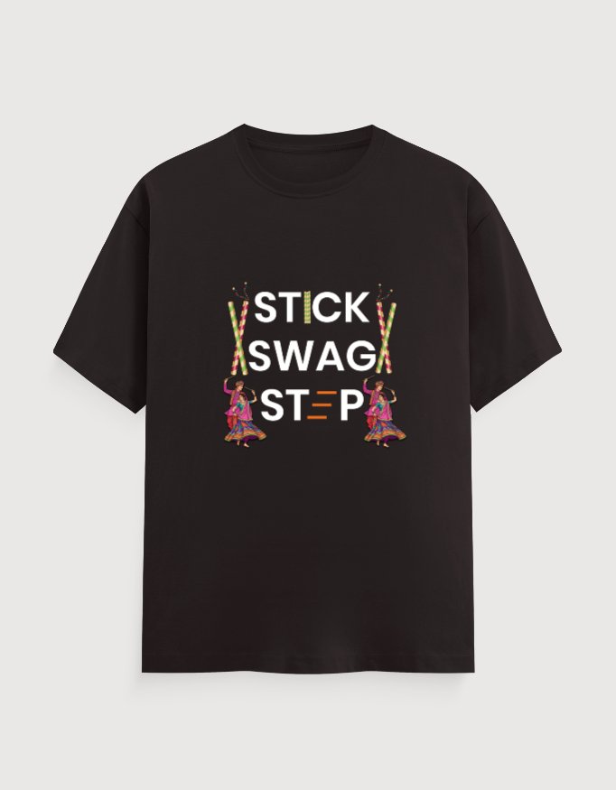 Step into the festive spirit of Navratri with this beautifully crafted T-shirt inspired by the vibrant energy of Dandiya and Garba. Featuring the playful yet stylish quote “Stick Swag, Steps”, the design blends contemporary flair with the timeless charm of India’s folk dance culture.