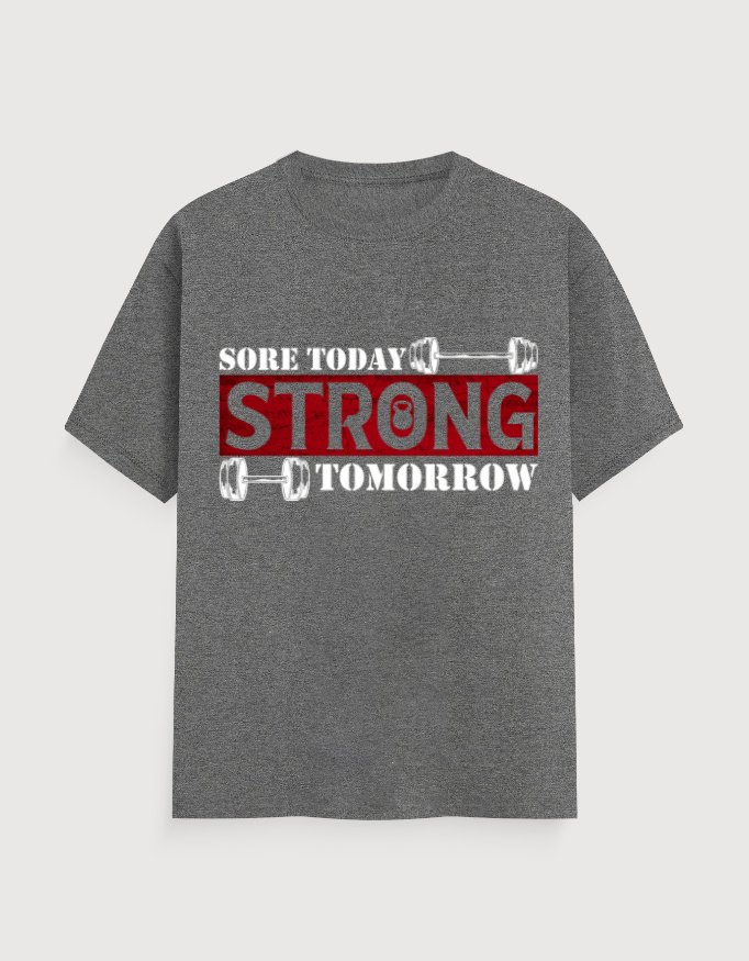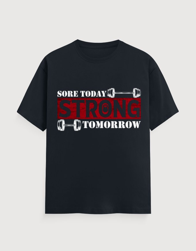 Level up your grind in style! This premium cotton T-shirt is made for the ones who live by reps, runs, and relentless hustle. Featuring a bold “Sore Today, Strong Tomorrow” print, it’s a total mood for every gym sesh, outdoor workout, or casual flex. Soft, breathable — perfect for crushing goals and posting those post-workout selfies.