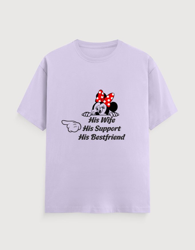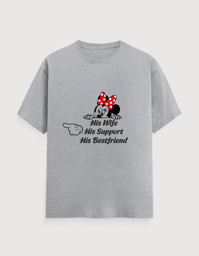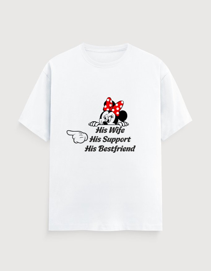 💞 “Celebrate your forever connection with this beautifully crafted couple T-shirt. Featuring the heartfelt quote ‘His Wife, His Support, His Bestfriend,’ this tee is more than just clothing — it’s a symbol of trust, love and partnership. Made with soft, premium fabric, it’s perfect for anniversaries, pre-wedding shoots, date nights or everyday wear, and lets every couple proudly showcase their love story in style.”💞